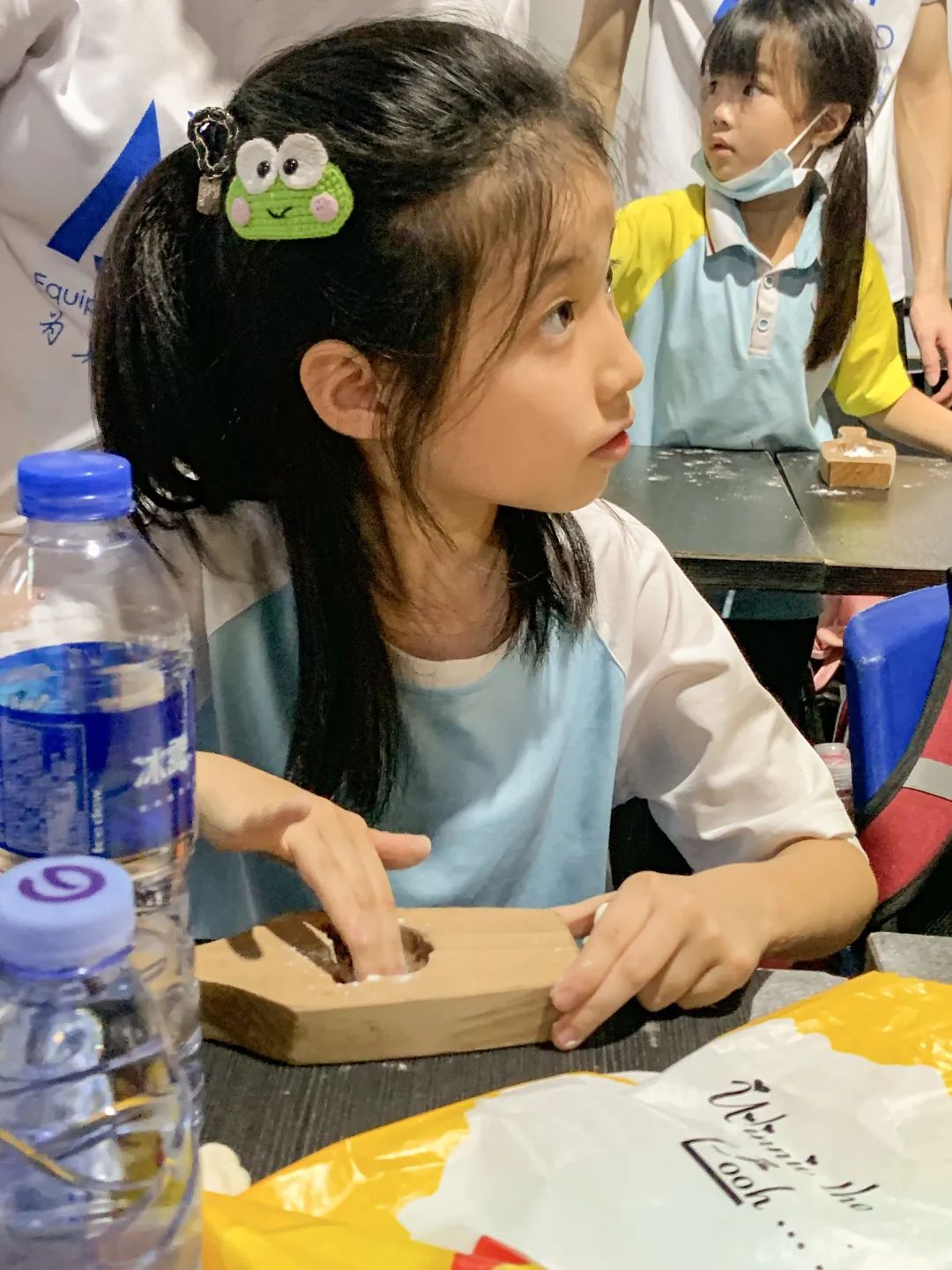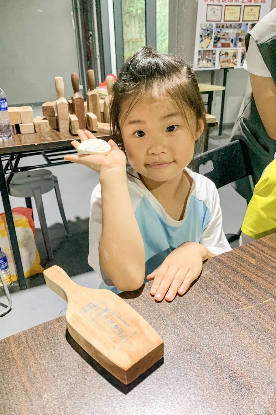 同学们在“广州饼印技艺”广州市代表传承人余兆基先生的带领下了解饼印技艺的前世今生,乐此不疲地体验印饼的制作过程。