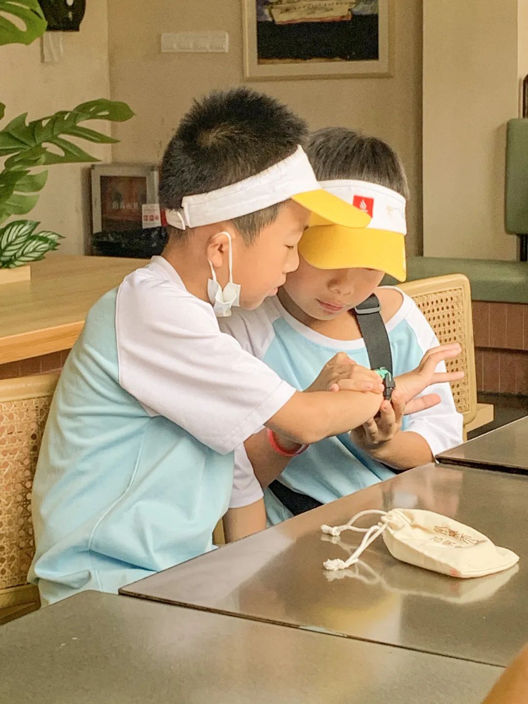 大家近距离观看广彩国家级传承人谭广辉大师的精湛技艺,并在其带领下学习从握笔、描线到填色等技能,亲手制作自己的广彩作品。