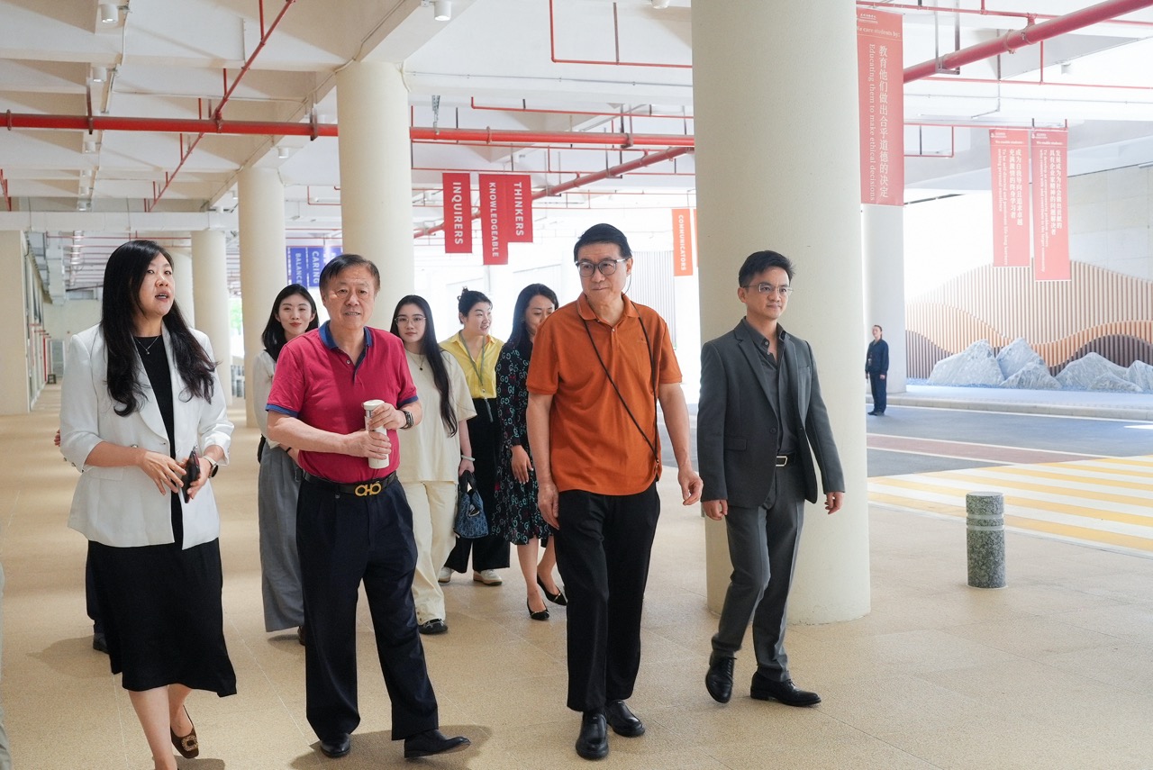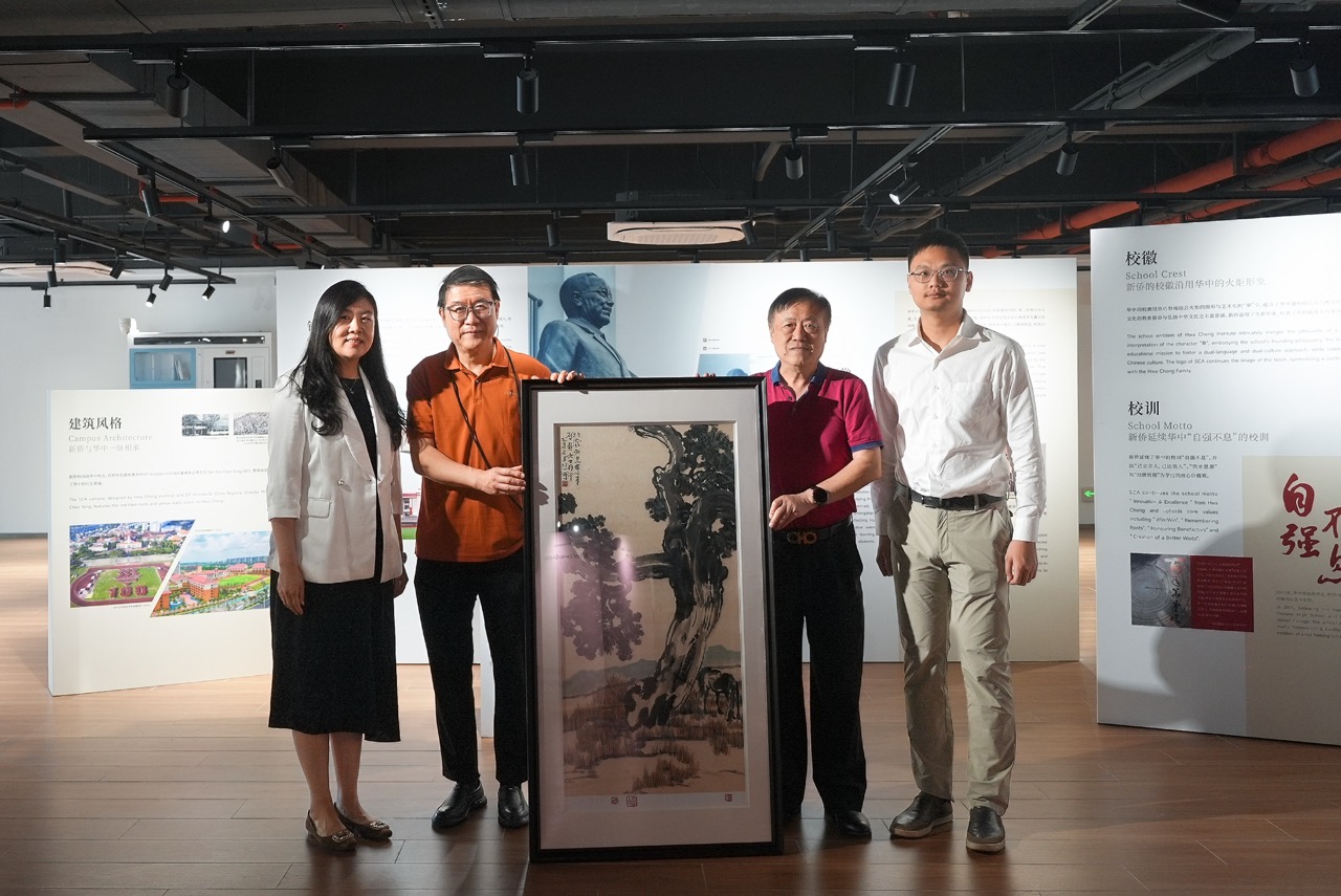 徐小阳、徐学君先生首先参观了学校活力轴的教学空间,对新侨的教学环境表示高度赞许。行至校史馆时,双方驻足重温了徐悲鸿与爱国侨领陈嘉庚的深厚渊源——1937年抗战全面爆发后,徐悲鸿先生远赴南洋以艺术救亡图存,其1939年在新加坡的首场抗战筹款画展即获陈嘉庚等侨界领袖鼎力支持。徐悲鸿“以艺报国”,陈嘉庚“兴学救国”,这段跨越时空的精神共鸣,令在场师生深受触动,无不为先贤的家国情怀所感动。