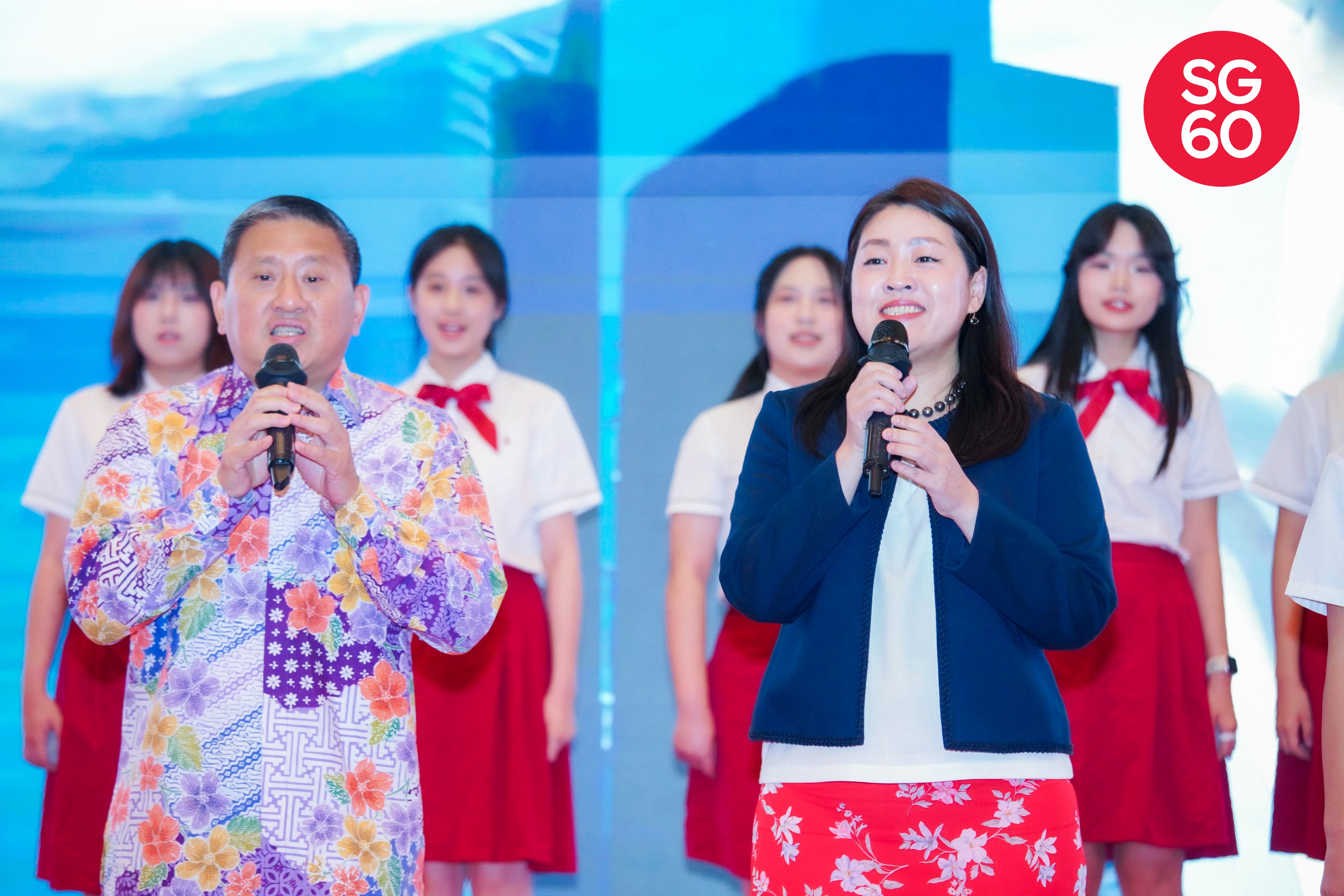师生共同呈现的新加坡国民歌曲《Home》,则是每逢国庆必唱的经典,承载着新加坡人深沉的家国情怀与乡愁。借着这首歌曲,新侨师生们为新加坡送上生日祝福。