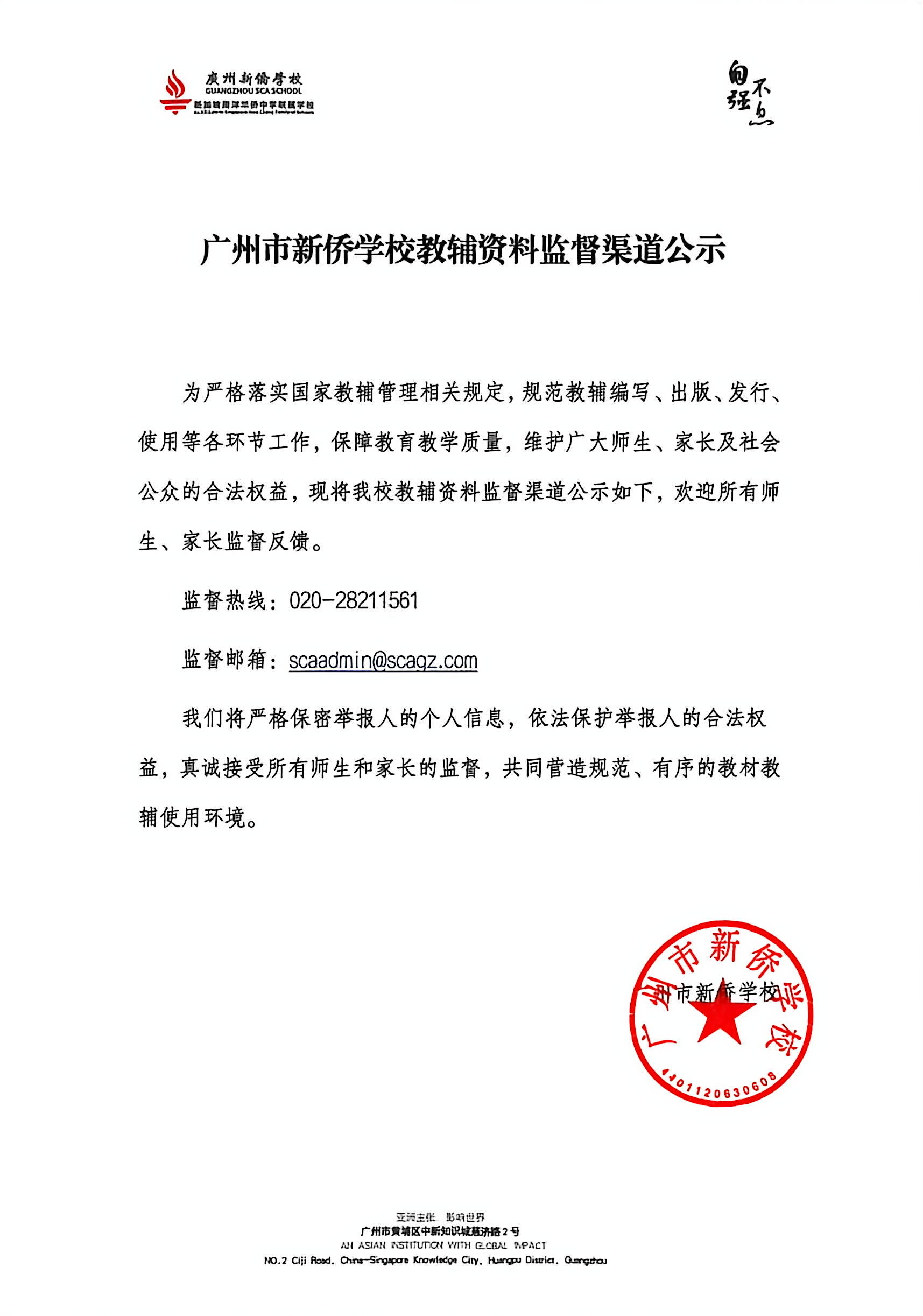 广州市新侨学校教辅资料监督渠道公示