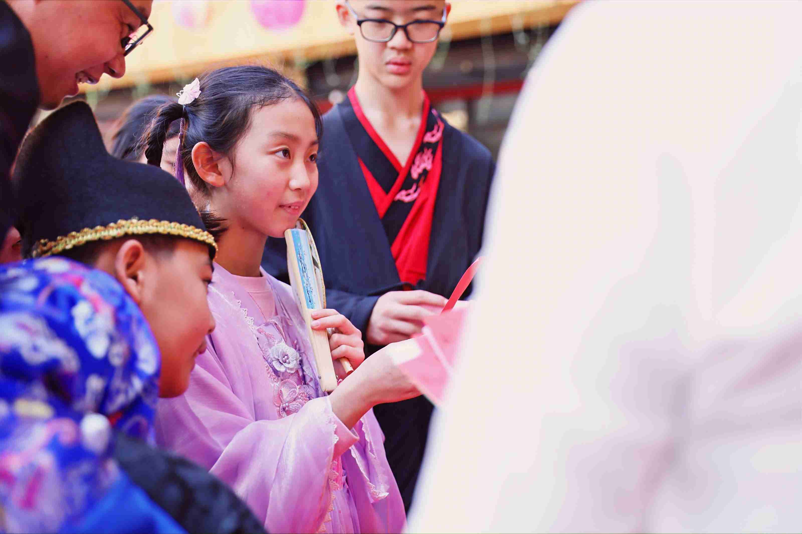 去年元夜时,花市灯如昼,闹元宵怎么能少了猜灯谜呢?在游园会上,我们设置了猜灯谜环节。面对有趣的谜题,同学们踊跃参与,乐在其中,答对谜题,还可以为学堂积累分数!猜猜哪个学堂将成为新侨的“最强大脑”?除了猜灯谜,特别受欢迎的还有糖葫芦和糖画的摊位,麦芽糖和水果简直是搭配,同学们一边品尝着美味,一边在老师的指导下尝试制作糖画。