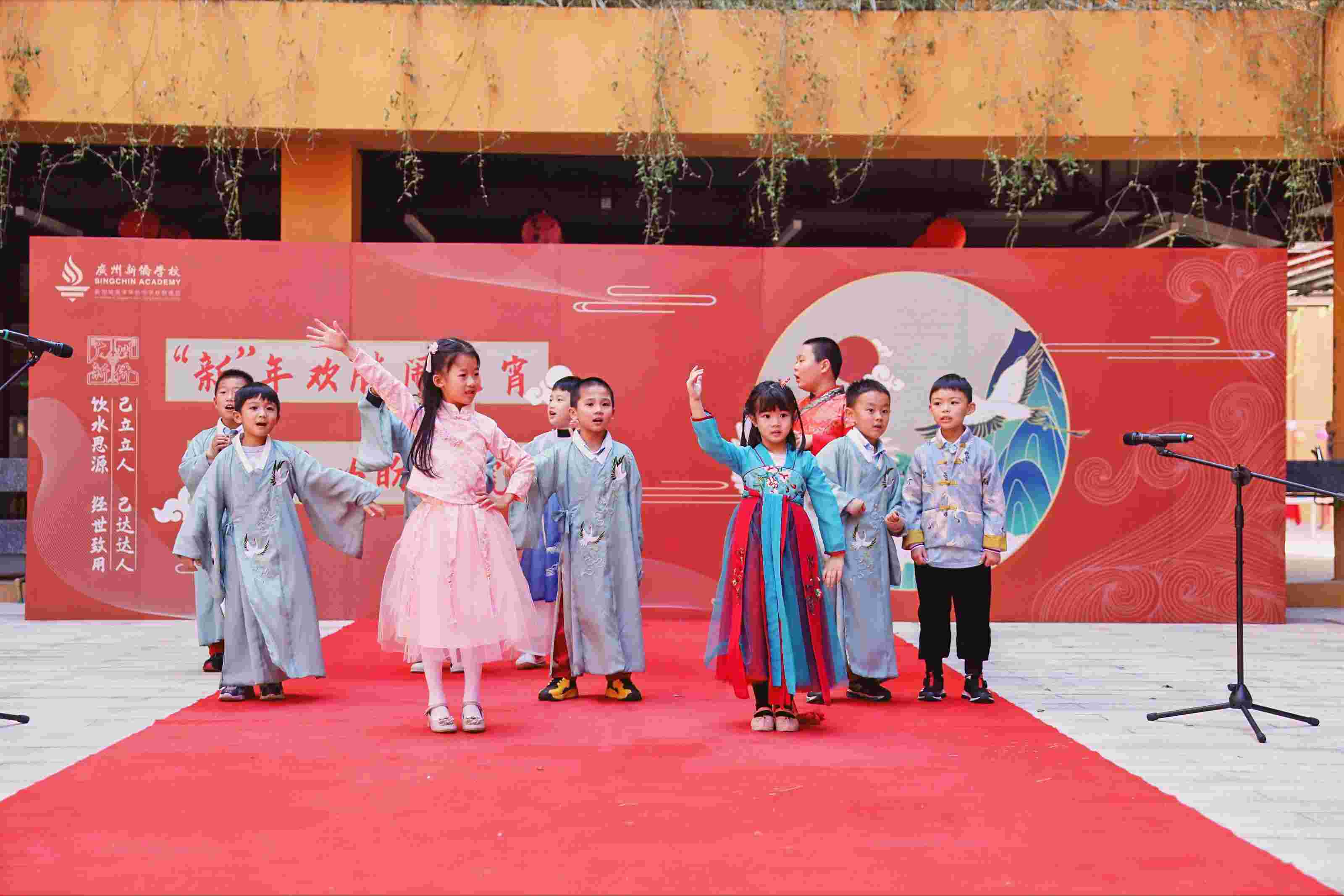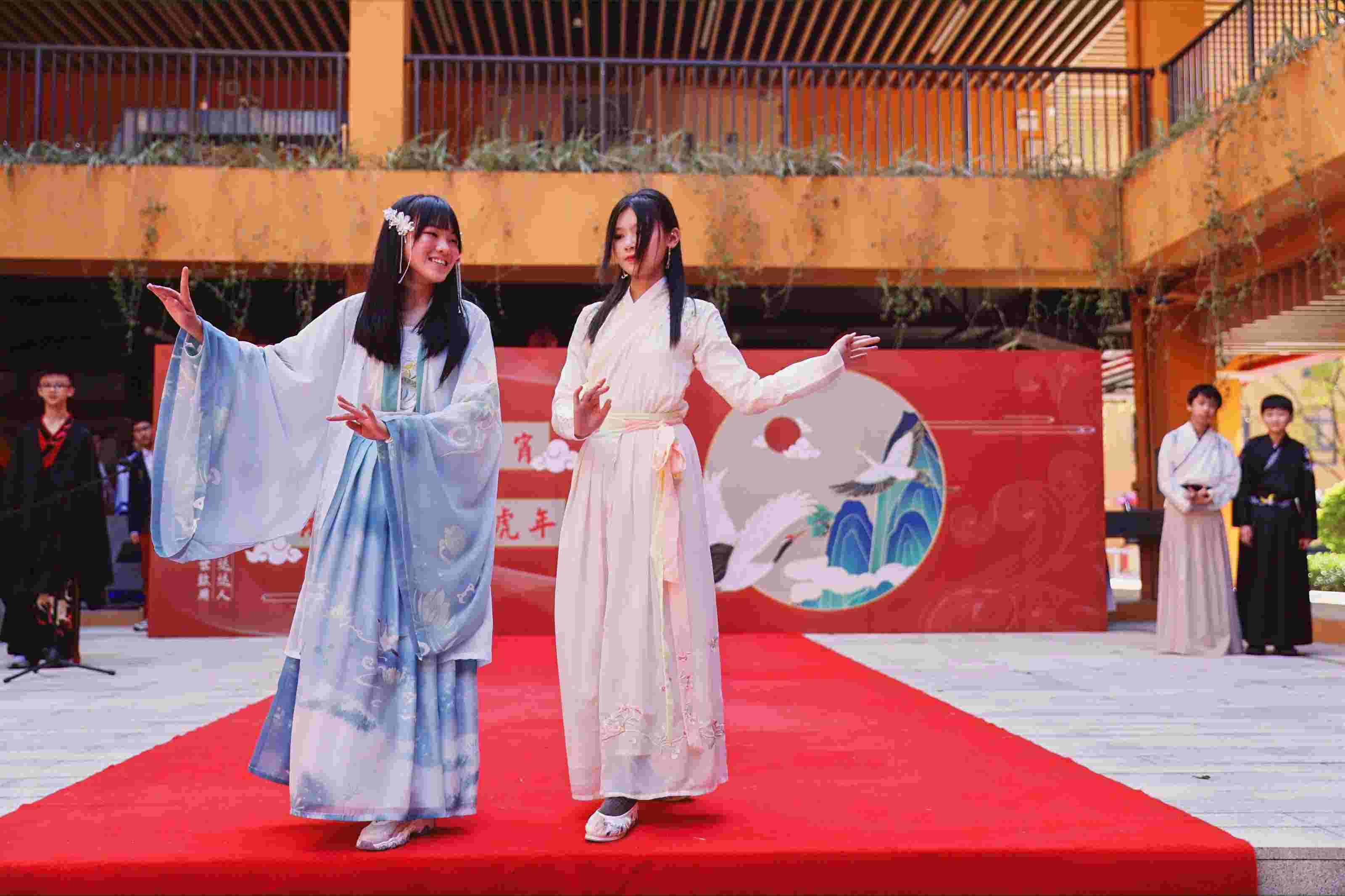 中国有礼仪之大,故称夏;有服章之美,谓之华。汉服是中华民族的传统服饰,正是有了它,我们能够理解中国古典文化中吴带当风之美。在团圆的日子里,新侨师生共同穿上了这美丽的传统服饰,带来了精彩的汉服走秀,他们大步向前,散发自信。除了走秀,同学们还带来了情景剧和歌舞表演。