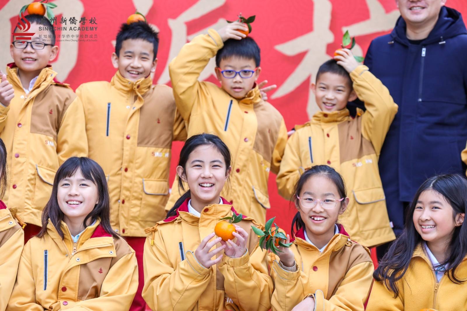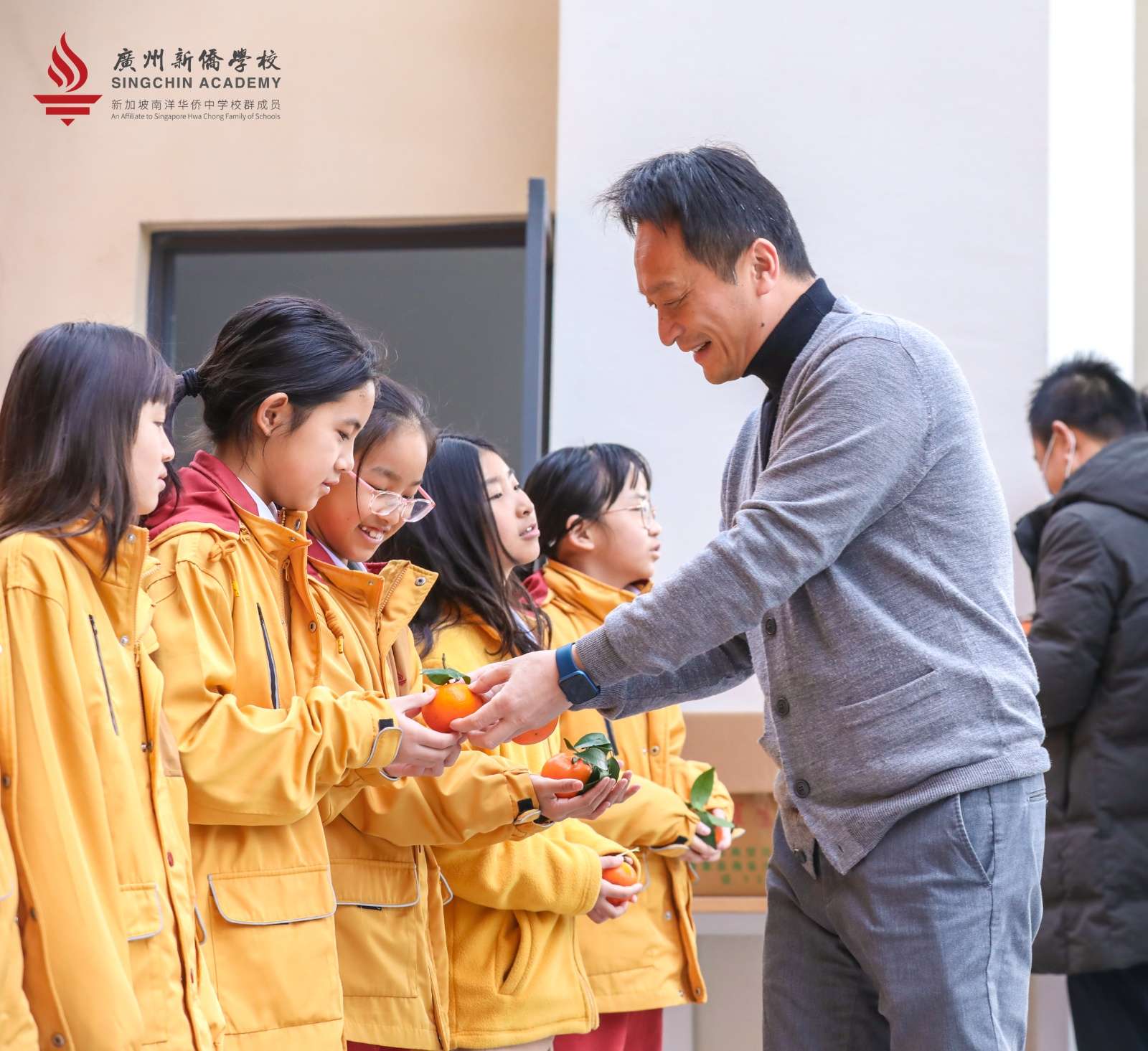 袁拔执行长及学部负责人为同学们送上金橘,祝福大家新学期顺顺利利,学业进步。